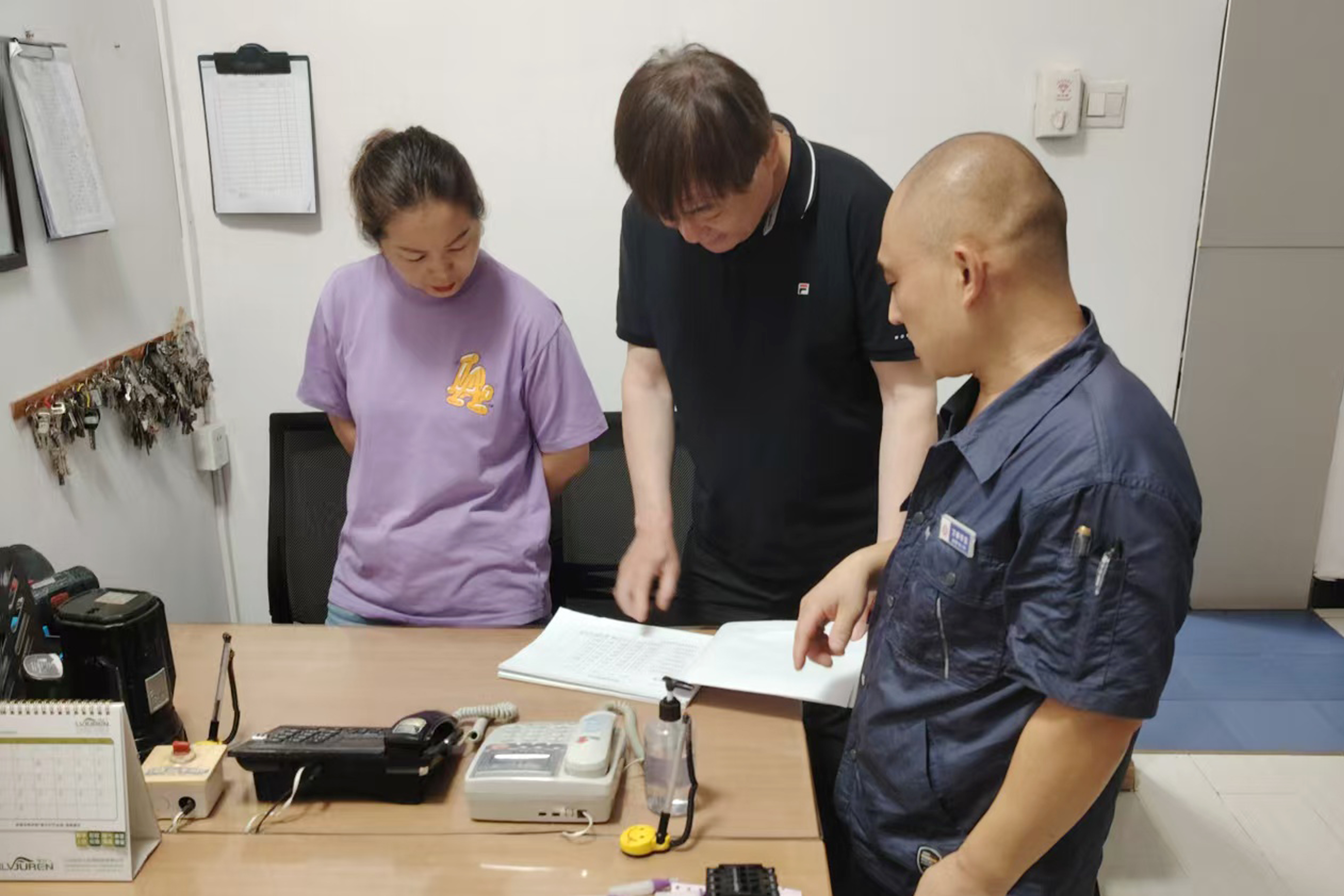 各检查小组按照既定方案,对供暖、配电、给排水系统、安防监控、各类泵房、机房等关键区域的设备设施运行状态进行细致检查,确保关键时候“拿得出、用得上、起作用”;检查电动车充电装置运行状态;围绕热力站空置区域现场研讨上下水系统实施整合的可行性;开展员工宿舍和底商配套专项检查。在纪律与管理方面,深入查看各部门安全管理制度落实情况,通过现场提问检验员工对岗位职责、突发事件处置流程、安全操作规范的熟练程度。检查公共区域环境整洁度、物品规范摆放情况及杂物堆放等问题。从制度执行与人员能力层面夯实园区安全运行基础,杜绝“重硬件、轻管理”的安全漏洞。